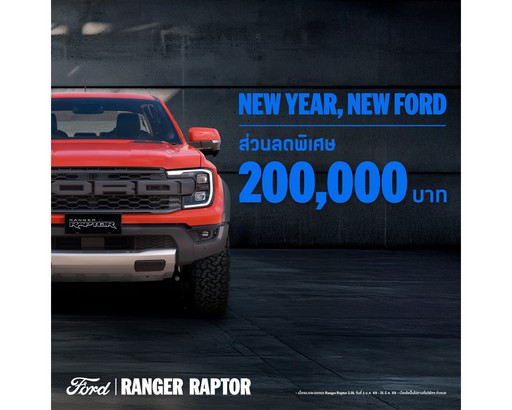 ฟอร์ด ประเทศไทย มอบแคมเปญแรงรับต้นปี ‘NEW YEAR, NEW FORD’ สิทธิพิเศษ! สำหรับลูกค้าครอบครัวฟอร์ด รับส่วนลดมูลค่าสูงสุด 200,000 บาท เพียงเพิ่มเพื่อนใน Ford Line OA @FordThailand และพิมพ์คำว่า FordFamily เพื่อรับรหัสส่วนลด (จำกัด 1 ท่านต่อ 1 รหัส) สำหรับลูกค้าที่จองและรับรถยนต์ตั้งแต่วันที่ 1 มกราคม – 31 มีนาคม 2569*