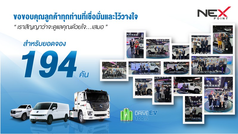 บริษัท เน็กซ์ พอยท์ จำกัด (มหาชน) หรือ NEX ประกาศความสำเร็จในงาน “มหกรรมยานยนต์ ครั้งที่ 42” หรือ The 42nd Thailand International Motor Expo 2025 ที่จัดขึ้นระหว่างวันที่ 28 พฤศจิกายน – 10 ธันวาคม 2568 ณ อาคารชาเลนเจอร์ ฮอลล์ อิมแพ็ค เมืองทองธานี ปิดฉากด้วยผลงานร้อนแรงเหนือความคาดหมาย เมื่อ “NEX VANTASTIC” CARGO VAN รถตู้ไฟฟ้า 100% รุ่นต้นแบบ ขนาด  8 คิว กวาดยอดจองรวมกว่า 194 คัน