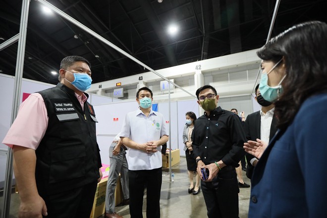 กระทรวงสาธารณสุขได้ดำเนินการให้โรงพยาบาลสนาม บุษราคัม1-5 อาคารชาเลนเจอร์ อิมแพค เมืองทองธานี จัดสร้างขึ้นเพื่อรองรับผู้ป่วยกลุ่มสีเหลืองซึ่งเป็นกลุ่มผู้ป่วยโควิด-19 ที่มีอาการแต่ไม่รุนแรงและเหนื่อยหอบ ซึ่งจะช่วยลดภาระของโรงพยาบาลทั้งรัฐและเอกชนในกรุงเทพฯ และปริมณฑล เพื่อทำให้ส่วนของโรงพยาบาลอื่น ๆ มีพื้นที่รองรับผู้ป่วยกลุ่มสีแดงที่มีอาการหนักได้มากขึ้น รวมทั้งพื้นที่แห่งนี้ยังได้จัดเตรียมพร้อมสำหรับรองรับผู้ป่วยกลุ่มสีแดงที่มีอาการต้องเฝ้าระวังพิเศษ โดยติดตั้งเต็นท์ความดันลบ เครื่องช่วยหายใจ และอุปกรณ์ต่าง ๆ