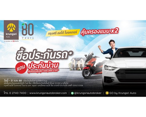 “กรุงศรี ออโต้ โบรคเกอร์” มอบความคุ้มค่าส่งท้ายปี โปรโมชันคุ้มคูณ 2 ซื้อประกันรถ ฟรี ประกันบ้าน