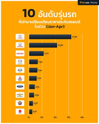 รถยนต์ยี่ห้อไหน ซื้อประกันรถยนต์มากที่สุด